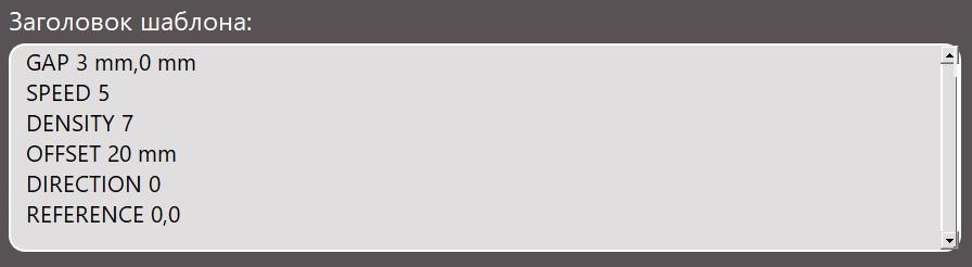 В поле "Заголовок шаблона" прописывается текст команд параметров этикетки на языке для данного типа принтеров. Например, для принтеров TSC может использоваться следующий набор параметров: