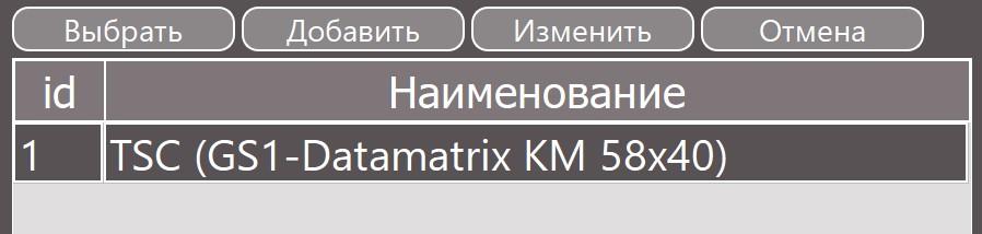 Указываем наименование шаблона, которое будет указываться в списке (например: TSC (GS1-Datamatrix KM 58*40, что значит шаблон для принтера TSC с типом кода GS1-Datamatrix, которая используется для печати кодов маркировки с размером этикетки 58*40мм.)